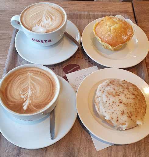 Read moreCame here 2 months ago, to be told the dishwasher was broken, not a problem then, but the diswasher apparently is still broken, so we can't order a pot of tea, all drinks are served in takeaway cups & food in bags, how does a company of this size of Costa justify in serving drinks & food in throw away cups etc. I find this unacceptable in the current climate. Also the customer service leaves alot to be desired. The 3 young girls on duty were busy socialising with each other, one even folded her arms & looked bored whilst serving a customer, this is not the customer service that I have come to...