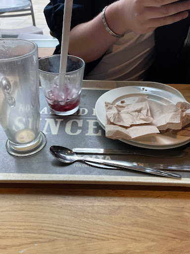 Went in for a quick drink and a cake with my eleven year old daughter whilst waiting for a train. As an incredibly friendly and relaxed individual that very, very rarely complains- what was intended as a small treat for my little lady turned into an absolutely appauling scenario. Served by a lady with ginger hair, my daughter and I tried to make polite chit chat with the barista and she literally ignored every comment we made, looked absolutely put out that she had to make our drinks, couldn't smile at my daughter once and left her in almost tears throughout our stay. To make matters worse, we then had to endure a moaning marathon between herself and a colleague about absent colleagues for the next 40 minutes. Totally ruined my daughters shopping spree and was an unfortunate anti climax to what was a lovely day.