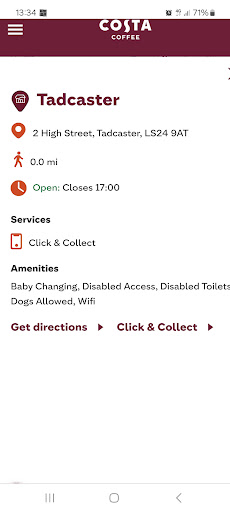 I have to admit to be a coffee addict and Costa is the best one on the market even though its cost is bordering luxury. It’s a shame the building containing Costa in Tadcaster does not reflect the premium brand, being a regular daily visitor to Costa Tadcaster I have noticed its constant deterioration internally and externally. Internally the windows adjacent the food counter have cracked glass within inches of the food, the timber and metal window frames are rotten and rusting and have gaps to the outside where insects can crawl through, again above this area there have been roof leaks which all reflect in the tired decoration. Externally is much similar, stonework left to deteriorate, the building has no ramp therefore anyone with a disability has to rely on the handrails, one of which is loose and is an accident waiting to happen, and the entrance door does not open and shut properly as the door frame is loose and moves with...