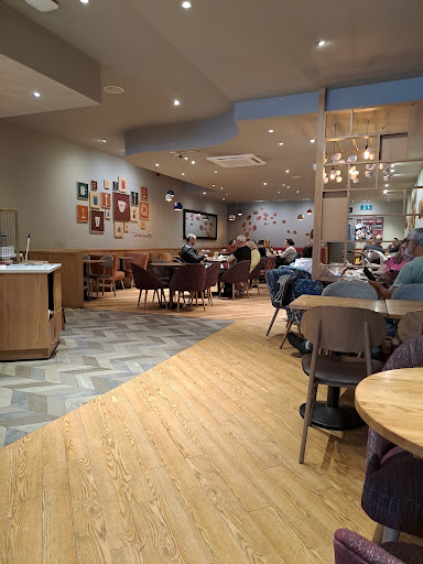 Went in this afternoon with daughter bought to pepsi cokes and sat opposite the cold drinks and sandwich fridges. Half way through our drinks, a man came up with an air canister blow lots of air into the vents, dust went every where cakes wasn't covered and my daughter and have asthma. Set my asthma off and my daughters, I did complain and got a sorry the he did the same with other coffee and machines ECT. Im Sure It's a health and safety issue . Food not covered tell after the event and customers sat in the cafe. Surley you should wait tell near closing time. Fuming and cakes must be contaminated...