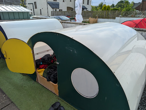 I booked one of the camping pods. It was not clean food crumbs and feathers covering the floor also you cannot close the door from the outside. The area outside the pod had lots of cigarette ends littering the floor. The combined shower toilet room had lots of paint coming off the wall the bin was overflowing. The drain for the shower was a crack in tiled floor. There was a small amount of well watered down hand soap the hand washing sink was not very clean. Along the coast to coast path I met three people who asked me where I was going to stay that night they were hoping to camp at the bunk house but it had a private function. One of them ordered a pint on arrival and asked the landlord if he could have a pint of water first. The landlord charged him £9.50 the same price as 2 pints. He then went on to complain when we asked if we could charge our phones. When the other two walkers turned up he charged them £7.50 per person after quoting me £7.00 . The place was very empty only a half dozen or on a Saturday night. I know this pub has a lot of good reviews. But for me it felt hostile unfriendly...