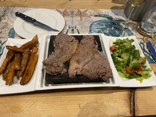 I ordered the hot rock rump steak, which was a real novelty. The steak was delicious and really good quality and the chips were amazing!