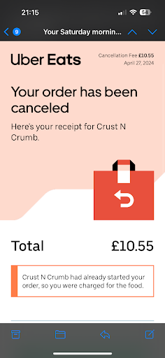 I left a two star review on Just-Eat yesterday after my £17 breakfast was undercooked - it's gotten a lot worse since.