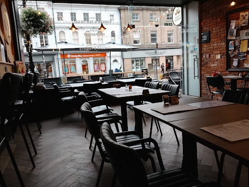 Popping in for breakfast is delightful. Weather-permitting, you can don your shades and achieve the continental pose right in The Old Market Square. Otherwise, inside has many more tables than you would expect from the width of the frontage. Either way, you can people-watch, right in the heart of the centre of Shrewsbury's river loop. Of course, the Tourist Information Centre, museum, Old Market Hall Cinema, high-end shops, banks and other cafés and restaurants litter The Old Market Square.