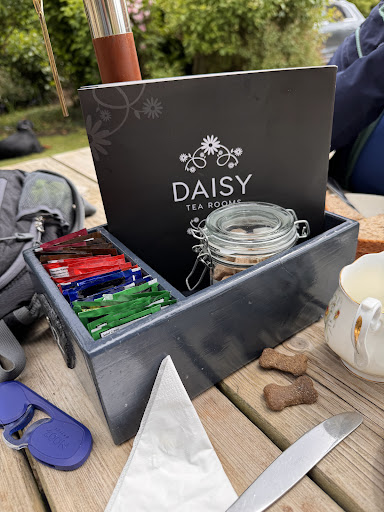 The service was poor, the staff were abrupt. On arrival we were told to "loiter" outside until our table was ready. Once seated we waited 15 minutes for a waitress to take our order - 4 afternoon teas. The drinks arrived and were drunk before the food arrived because we waited a further 30 minutes. We asked for the cakes not eaten to be wrapped to take away and were handed a small bag and told "most people manage with this". The food wasn't as shown in the photos on the website. The salad was old and brown. The scones were dry and plain not with sultanas and the cream was whipped not clotted. The acoustics inside were poor resulting in our conversation being blocked out by the conversation of 3 ladies on a neighbouring table. There was a vacuum cleaner left under a nearby table. We noticed when other customers asked passing waitresses for more drinks they were told that they would come back to take their order but they didn't. The place was busy but that is no excuse for poor service. They shouldn't over book if they can't deliver good service. We wouldn't recommend DaisyTea Rooms. It wasn't the enjoyable experience...