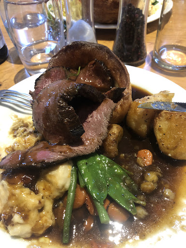 Food - I had a fillet of beef. It was good but was made really good by a viscous and moreish jus. The dauphinoise was beautifully presented and tasted as good as it looked. My partner had the halloumi and didn't draw breath. Cheese options we chose were decent and onion relish was new to me and worked really well.