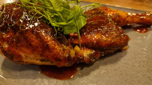 Came here on a Friday evening and had a lovely time, with really great service, but a couple of issues with the food, hence losing a star. First time coming here and have to mention the staff are fantastic. Really friendly and just the right amount of attentiveness. I had the chicken wings to start with the hot sauce and blue cheese dip. The wings themselves were beautifully cooked, really tender, and fell off the bone. The sauce, though, wasn't hot at all (at least not to me). I found it more to be a bbq sauce than a hot sauce as it had quite a bit of sweetness. I asked if it was the hot sauce, and after checking with the kitchen, I was told it was. They were still lovely, though, and I would order again, I'd just mention I like them hotter. My partner had the prawns and said they were fantastic! Really well cooked and full of flavour, one she'll definitely order again. For main, I went for the 1/2 roast chicken, which again was so well cooked, but the same as before with the sweetness on the hot sauce. I would order again, though, as the chicken (and the chips) were delicious. My partner went for the pork quesadillas, and found them to be nice for the first couple of bites, but then too much fattyness came through which led to them being too rich for her and meaning she left some and left her not really enjoying them by the end of it. For dessert, we shared the ginger sauce cheesecake and unfortunately found it to be very dry, chalky, and lacking in any flavour. The ginger sauce lacked ginger too, and we ended up leaving the majority of it. This dish we did mention to the server that we wouldn't get again as it wasn't very nice. We were kindly given 50% of it which we thought was very generous of them. Overall, the meal was very enjoyable, with excellent 1st rate service, and whilst it was a little quiet when we first arrived, it picked up and had a great atmosphere when we were leaving. The food was excellent mainly, with just a couple of niggles. Definitely recommend...