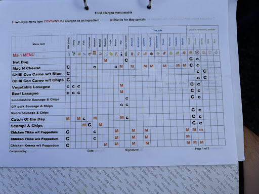 Read moreThey don't publish the allergen list anywhere so here's the relevant pages when was looking through for Gluten Free options - obviously confirm yourself in case things change. Staff member confirmed they have two friers when pushed but when asked 'do you have anything GF' the answer was 'I don't know!' which is always a bad start! Got told can scan QR code to see the allergens which I couldn't see anything there, but do have allergen book.