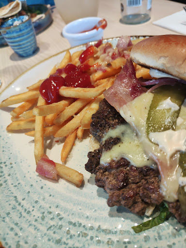 Lunch today with 10 yr old granddaughter and my husbandā¦ā¦ a sadly depressing experience not to be repeated! We hadnāt booked so weāre told we had to sit in the bar, meaning one of us at 80 had to perch on a high stool! Fineā¦..except of the apparently reserved tables, which were empty but uncleared, one suddenly became available to us when I heard it being offered to someone else! So far, so betterā¦.. But having ordered, and then told that two of our orders were unavailable, we had to wait for over 45 minutes for our food, with a very hungry grandchildā¦.. and grandparents! During this time the woman at the table sitting next to us who was already there when we sat down, left saying sheād waited long enough. I mentioned this to the manager as we paid, and he seemed entirely unmoved, albeit perfectly charming to us. This would seem to tally with similar experiences of other people leaving in despair after waiting too longā¦..(reviews). When we finally got our food, two meals were acceptable but underwhelming and poor value. My chicken burger, (extra chipsā¦..chips not included with the burger?! Unusual and penny pinching), was even more bad valueā¦.. to be honest, I was quite shocked! I ordered a portion of chipsā¦. they were very nice chipsā¦. as so they should be, as I worked out that they cost approximately 50p per chipā¦ā¦chipflation?!, Didnāt know that was a thingā¦ā¦ my granddaughter said āGranny, is that all the chips you get?ā!, We mentioned everything very politely to the manager, and he charmingly removed the service charge, but at the same time appearing to be immune to the criticism we we levelling at The...