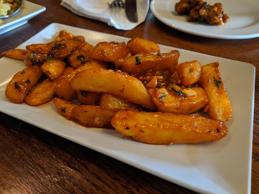 We had a selection of Chilli Paneer - nice, Chilli Garlic Mushrooms - really good!, Chilli Garlic Mogo - average, vegetable momos - not that good, peri peri chips - really good, and a couple of mains to try.