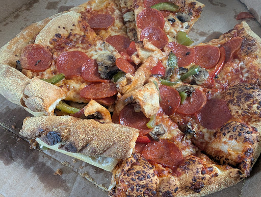 Read moreIt was Sunday evening. Very few other takeout options. We ordered the three large pizza deal (£9.99 each) via the website. Collection was available in only 15-minutes. The website provided a real-time countdown and I turned up on the dot. There are several pizza assembly bays separated by perspex screens along with busy workers all smiling. The last of the three pizzas came out of the oven just as I walked in. We had ordered a meat feast, pepperoni passion and veggie. All of them were excellent. The leftovers tasted equally good the next day. Highly recommend...