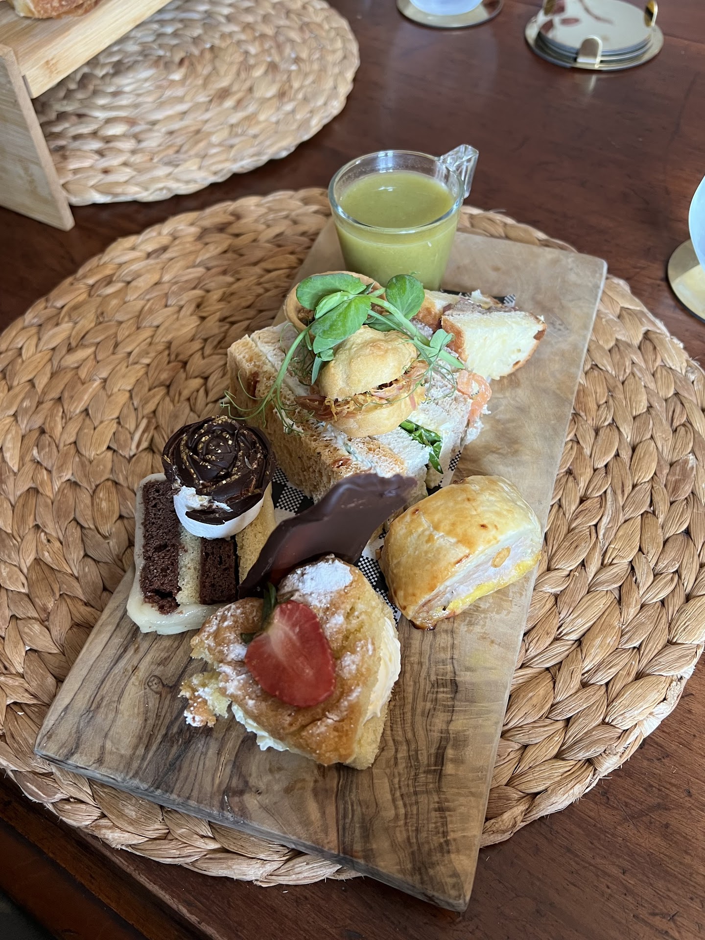 We hadn't booked a table but tried our luck and they managed to fit us in. You need to pre order the full afternoon tea experience but they offered a mini afternoon tea which was simply outstanding - the best I’ve had in a long time and incredible value at only £15. The sandwiches were fresh and bursting with flavour, the scones perfectly baked, and the array of savouries and sweet treats were both delicious and beautifully presented. My friend had the ploughman’s which also looked amazing and great value for money. Everything felt indulgent yet loving prepared.