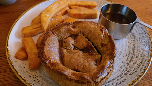 The staff appeared rushed and were really grumpy. If you stood near the glass collection area boy did you know it; people who were asked to move by the staff were done so in a really in-polite way. What happened to good service. A better explanation at the time that we ordered our food about how long it was likely to take was all that was needed (about 30 minutes); we could then have had the choice of either choosing to stay or to go elsewhere. As it was I'd have preferred to go elsewhere. It doesn't matter how busy you are, a polite word, a smile or a please or thank you doesn't go a miss. In a service industry with so much competition your business can stand or fall - and as part of a national chain you either need to improve your customer service or improve the work environment so that the staff are happier. It was a really disappointing visit, when the food arrived it was average at best, the crust on the steak pie was solid and dry.