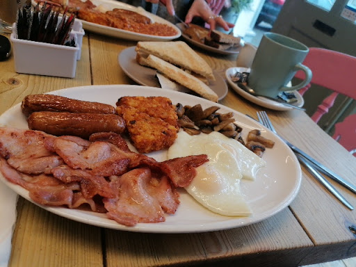 Read moreSuper friendly staff. Started out with a lovely mug of tea, which is always a good way to begin. The breakfast was everything I wanted and they even let me swap out beans (which are waxy little balls of evil) with more bacon (which is the food of the gods). There was a little wait but that just means everything is made fresh and not sat under heat lamps - well worth it! Would absolutely munch here again. Only sad I didn't have room to try the cakes, because they...
