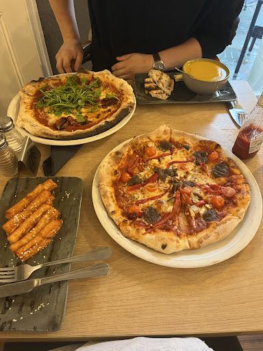 The pizzas were excellent. Unusually authentic and with generous, good quality ingredients (tasty rocket and plenty of well-flavoured ham and thick parmesan shavings on mine, for example). The onion rings were crisp and the batter was good though the onion inside was flavourless (as is often the case - a real pity).