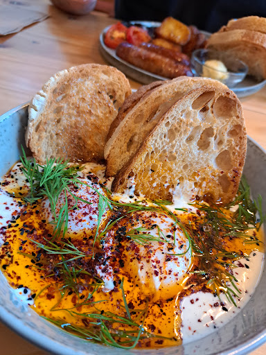Read moreSaturday afternoon, just after 13.30, and the place is packed. Well, it should be to be honest. All the tables are full of bustle, and the waiting window stools are full of those hopefuls next to occupy and taste the delights of Fara! We didn't have to wait long, but we didn't even get to sample the window stools before being shown to a table. I have to say, there is a definite feel of Brighton here. That kind of bohemian laid back like it or leave it. It's a kind of likeable, fun arrogance. The menu is small, but I like that. It means the kitchen can really focus on the ingredients, what goes on the plates, and goodness me. What goes on the plates is so so good, delicious, and done very well. We ordered tea. Earl Grey for me, and builders tea for my girlfriend (her words not mine 😅). At the same time of going up and ordering our teas, we order our food. We ordered the Turkish Eggs and the Shakshuka. A 35-minute wait was advised, but hey, this is real food, and the place was packed. No big deal. Our teas arrived in glass tea kind of cafetieres on these wooden boards. I love a cuppa, and Earl Grey is a comfort for me. Not the best I have to say, even after leaving it for the recommend few minutes, it was still, well, boring. The builders tea the same. The wooden boards a disaster too, too small, spill disasters were narrowly avoided. Well, the food. There are no substitutions or additions allowed. It says it on the menu. Bold, very bold and brave. I get it. It's a this is our food. Proper belief in the plates. The Turkish eggs. Garlicky yoghurty oh my goodness yummyness. Everything is working in harmony. The chilli oil is just enough, and the dill is adding that aromatic lasting earthy balance. The toast we could have had more was really enough. Mopping up the last drips of egg and yoghurt mix to leave a spotlessly clean plate. The Shakshuka is the same. Jo said it was the best ever, and even asked if we could make it at home! Fara is a real pleasure to eat at. I can see this restaurant/cafe, not sure which, but it will grow and grow. I hope it does. I hope the kitchen team sticks to its guns and doesn't change the winning formula either. It's good, blinking good. Go, taste, and eat. Walk away with a similar...