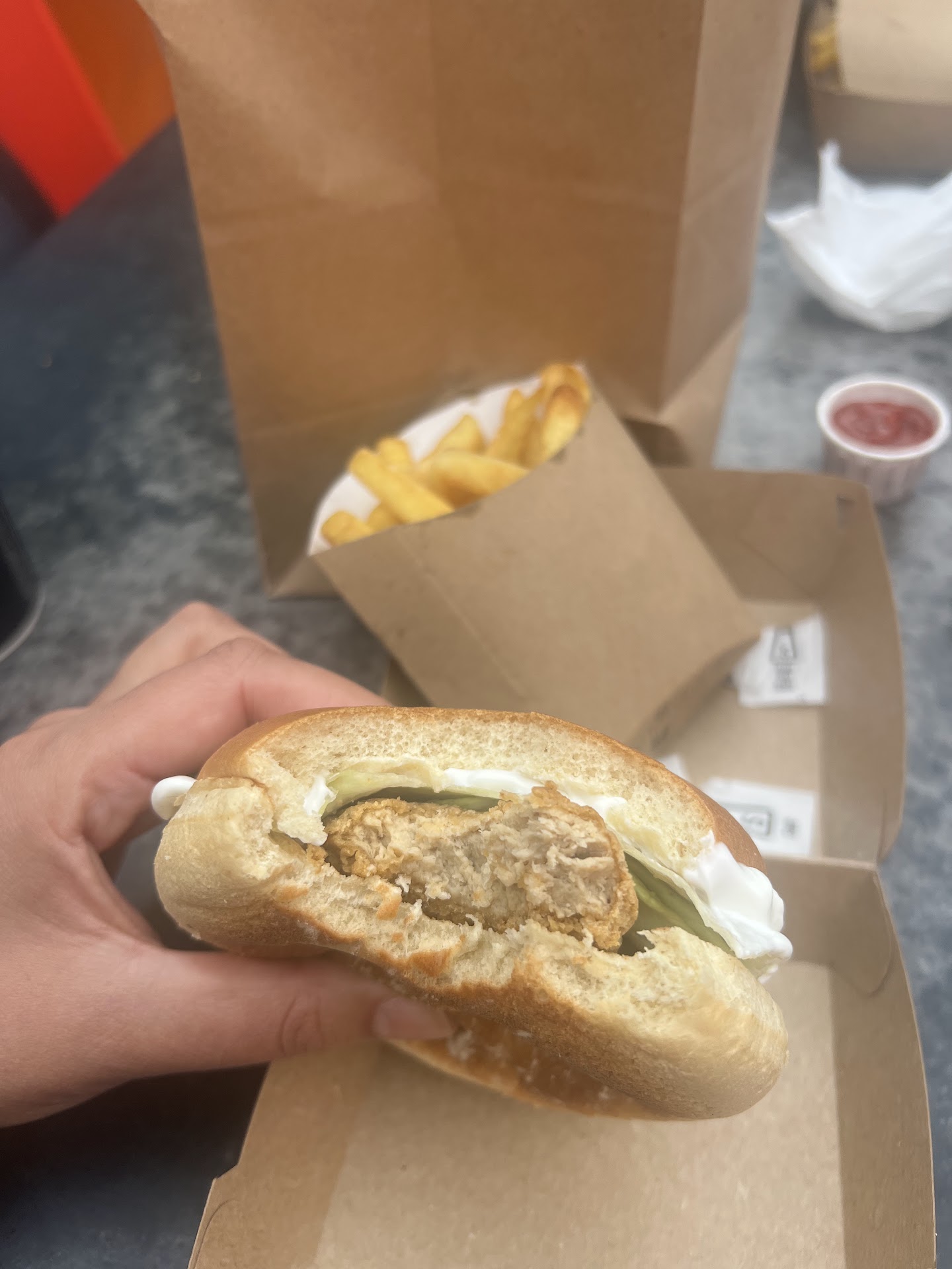 Read moreDon't expect to get what you see on the board! The staff are friendly and attentive, happy to help out and get your order right. The food is poor though nothing like the pictures. the chicken is well cooked, but no KFC the burgers are badly constructed and taste like they have been sitting around for a while. Cheese and one piece of lettuce merge into one goop. See my picture. Chips are ok but not fresh, more tepid They would do better to get KFC in here! Expect at least £10 a head on average adult meals are £11+ The atmosphere is frenetic and busy. However, that's to be expected you're...