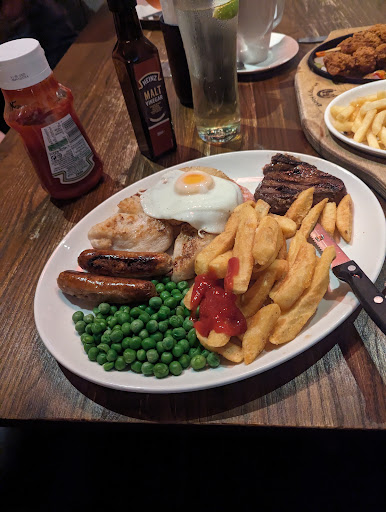 Read moreVery disappointing meal out. Almost every item we tried to order was not available as per usual and the lady serving us made a comment that if the next item is out of stock then we should just order a salad instead. The area stinks like urine and was told by the staff âyes itâs the menâs toiletâ so itâs a known issue they choose not to fix. We had the pleasure of sitting next to a group of very clearly intoxicated individuals that were using very vulgar language in the area for families when we had young children present, getting scared as the men were shouting at the top of their lungs. I understand this is not the fault of the company however you would think the staff may of been helpful and asked them to quiet down. We then had to wait about 45 mins for just cutlery which we ended up having to go ask for and then a further 10 mins for the food. This is understandable on a busy bank holiday however the place was the emptiest Iâve ever seen it so was very confused about this. We ordered two lots of fries with one meal and only received one and when we queried this with the staff we was given a very dismissive and defensive answer. All in all a very poor experience and honestly not the only bad time we have had at this place. We only came back when they brought in a new menu and staff as we thought it would of improved but clearly they only pick and choose when they would like to be a respectable business. Will not be coming again and will drive the extra miles to find another place to enjoy instead. Please keep your money and spend it elsewhere honestly....