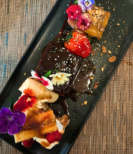 The food was spectacular and beautifully presented. We had scallops and bread as starters. The bread was fluffy and light. The scallops were amazing and the sauce with them was delicious. For the mains, my friend had the 3 Little Pigs (adorable name!) which was Pork Belly, Pork & Leek Crumble, Bacon Chilli Jam and Apple Gravy. I tried a little bit of the crumble and it was incredible. I had the Fillet Steak (med-rare) with Fondant Potato, Macaroni Cheese Bon Bon, Tenderstem Broccoli & Pepper Sauce. The potato was lovely and the macaroni cheese bon bon was such a unique touch. The steak was cooked beautifully. We both said the food was absolutely amazing. For dessert we had the trio of desserts which was cheesecake, semifreddo & sticky toffee pudding. It was one of the nicest sticky toffee puddings I have ever tried and it was all so nicely presented we almost didn't want to eat it! Perfect end to the evening.