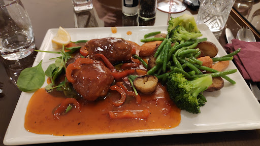 I had pork ribs bbq sauce for starters and monkfish wrapped in ham. Portions are big . Service is great. Food wise, I don't particularly loved it. It was a bit too sweet. For Monkfish, i feel like there were a lot of sweet chilli sauce just being too sweet. Oven baked veggies were nice. Toilet can be cleaner. I rate 3 for toilet. Taps were dirty. It clearly hasn't been cleaned for a while. But it wasn't smelly or anything. For a restaurant like that, toilet and sinks can be improved overall.