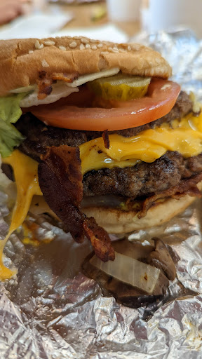Read moreI came to 5 guys as myself and a friend had been enjoying a costa in the car park opposite and the smell was drifting across. We looked up their website chose a selection of food and we're very excited to sit and enjoy a meal without worrying about children or bills or work. We were also extremely surprised at how reasonably priced the menu was. We ordered our food and drove round. We both suffer from physical disabilities so I was appalled at the lack of easy access to the restaurant doors from the car park. But the biggest kick in the teeth was the £100 fine I received a week later for parking in their car park to collect food and eat it. This is absolutely ridiculous as it would appear they have removed the permit holders only signs from several parking spaces directly next to the stairs leading up the the restaurant, and the parking spaces they have painted for their curbside pick up. Needless to say I will not be returning to this restaurant not just because I cannot access to from any other car park but because I refuse to pay a fine everytime I decide to eat there. I also recommend that the restaurant put signs up regarding the permit holders only conditions of parking visibly from all parking spaces including the ones that appear to belong to the restaurant.