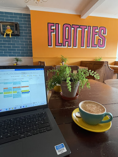 Flatties is a beautiful hidden gem in Penzance and highly recommend a visit! The coffee and cakes are delicious and the atmosphere is very relaxed and calm. The barista who served me was wonderful and made a great chai latte for me! I’m a hybrid worker and chose to work at Flatties and it worked very well. It’s quiet enough to have your head down to work but also enough energy to feel that buzz of being in the heart of town. The decoration around the cafe & shop down stairs is stunning, there is always something fun and colourful to look at! I will be making this my...