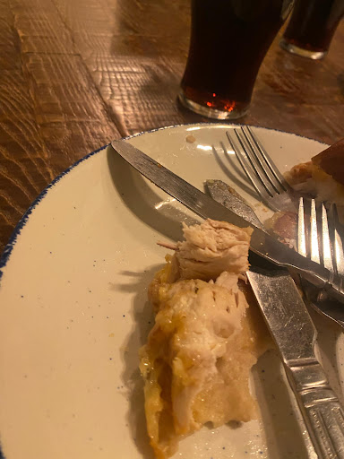 My partner ordered the cheese and onion pie which she asked for with chips (instead of mash) and according to the menu this was served with honey roasted carrots, peas, and mange tout. On her plate, she had eight chips, no peas, three pieces of mange tout and carrots that were NOT honey roasted! There was also a very small jug of gravy which wasnāt even half full. She asked the young man who had bought the food out where the peas were and he tried to tell her that the peas were encased in their shells (unbelievably he was referring to the mange tout! š¤¦š»āāļøš¤£) She explained that this was a totally different vegetable and that she was expecting honey roasted carrots and peas. He took her plate away and then bought it back with the addition of a small spoonful of peas. He couldnāt offer any explanation as to why the carrots that were advertised as honey roasted werenāt and were just regular boiled carrots. š¤·š»āāļø
