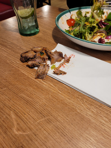 Not a pleasant experience today ( 29/9/22 ). My husband,daughter and I chose this restaurant over the others onsite at Hempsted Valley. We ordered our meals ( Uni deals ) burger,fries & coke for £8, Spaghetti Carbanara with chicken & New York Cheesecake ( 2 Course set menu £13.99 ) and again from the same 2 Course set menu "gluten free" potato skins and house burger with jacket potato also "gluten free" with gluten free bun. Sounds nice so with thought. 🤔😋 Unfortunately not so every mains had issues - spaghetti carbanara fatty/raw bacon which my daughter picked out and put to the side of the bowl. The chips were cold on the Uni days deal. Both burgers did not taste of beef! My burger was swimming in fat/grease and it fell out of my hand onto the plate,put it together and with my husbands help cut it in half the bun was soaked in grease and I put it in a serviette and took a bite of it and had to spit it out back in the serviette! I thought my dog wouldn't eat that meat. In places it was pink/grey in colour not brown. I explained the above to our waitress and she gave me the menu to choose another gluten free meal from the set menu, none of which I liked as didn't want another burger even a chicken breast one ( as this could be pink to )! 🤢 I ended up choosing the steak salad and asked for my steak to be burnt, at least salad cant go wrong I thought. 😏 I know steak is chewy when well done but least it would be cooked and being sirloin steak hopefully taste better than the burger. I was warned it would take 15 minutes or so to cook the steak to my requirements. It was a little longer and obviously my husband and daughter had finished what they were going to eat of their mains by the time mine had arrived. I had to send it straight back as could clearly see pink bits on the steak slices. Eventually 25 minutes after ordering it my steak salad arrived and the steak looked more cooked. So I began to tuck in, the salad was OK abit to much onion the rest was OK. When it came to the steak most pieces were cooked, they were all so fatty. ( see pic ) over half of the steak pieces had lumps of clear jelly on them. 🤮 I picked out the pieces ( as in the pic ) and ate what I could as I was hungry by this point. I explained to our waitress about the fatty bits and the plate was taken away. Out of the whole meal only the potato skins,soft drinks and cheesecake were edible. 🙄 We asked for the bill and after explaining I wasn't paying for one of my mains we still ended up having to pay £33 for a horrible time and food. PLEASE AVOID!!! This use to be a lovely restaurant with Italian rat pack music playing and great food, it's gone soooo downhill we will never be...