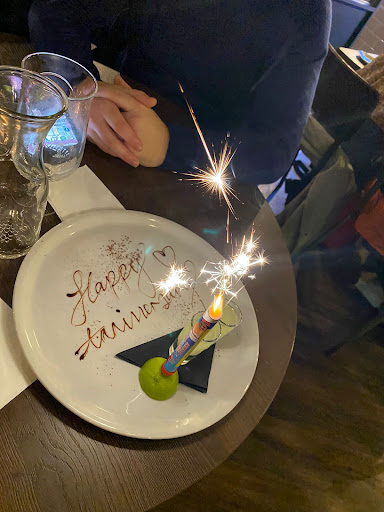 As it was our anniversary they also gave us a shot each free of charge! It was served on a wonderfully decroative plate that had some kind of sparkler firework on it, exciting and unexpected, it really made our night! Thanks for the surprise guys!
