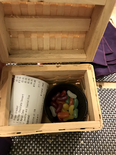 I know this is only a small thing, but I love how they presented us with the bill; it came in a large wooden box and sat next to a small bowl of jelly beans!