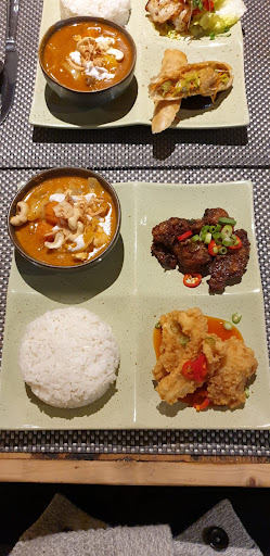 I ordered the duck spring rolls as a starter and the "Massaman" (which, as the menu helpfully informed us, is a Muslim-style curry from Southern Thailand that is made with coconut milk and dry spices such as cumin, cinnamon and star anise) as a main; both were very good and the portions were neither too big nor too small (just right!). Not only this, but the service was very fast (this was probably due to the fact that we came a bit earlier, but still, it's worth noting) and the waiters very kind.