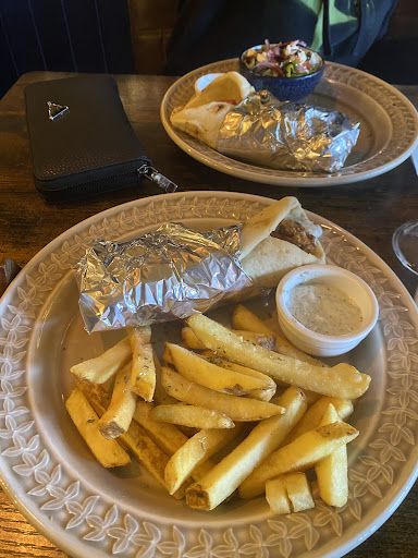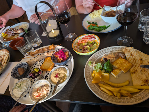 The menu offered a thoughtful mix of classics and modern takes on Mediterranean dishes. I started with the mezze platter which was a standout—plentiful, hot, and bursting with flavour. For main I had The chicken gyros that were to die for the chicken was juicy, well-seasoned and absolutely delicious. My partner had the seafood platter which was vibrant, generous in portion, and brimming with fresh tempura prawns, squid and other bits, he added the calamari which he said was amazing.
