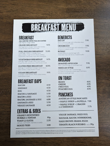 Ordered the full English breakfast with extra bubble and squeak (99p), lovely as always. The bacon is exceptional and thick and not everywhere does fried bread but Grand Central does and nicely. Black pudding nice and a good amount of beans + tomato not watery, hash brown notably crispy and not average like many places. The sausages were just "ok" but not bad at all. Proper Heinz ketchup in a bottle + a nice flat white coffee. Daughter had pancakes with maple syrup with a nice hot chocolate with marshmallows which she loved.