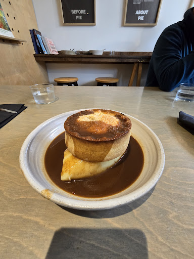 Read moreThis pie shop has been on my radar for a long time as they make some bold claims and have a long list of awards for their pies. We finally got the chance to pay a visit March 2020. The place is cosy and impeccably clean and smart, I really liked the minimal decor. The waitress was warm, friendly and really enthusiastic about the company. We ordered and when our pies arrived they looked and tasted amazing, I liked they were served in a dish on top mash and covered in really thick and tasty gravy. If I'm being picky, I'd have liked a veg side (peas or carrots) just to balance the dish. But overall it was outstanding. Is it the "Best pie in Britain?" I don't know but I thoroughly recommend you go try them and decide...
