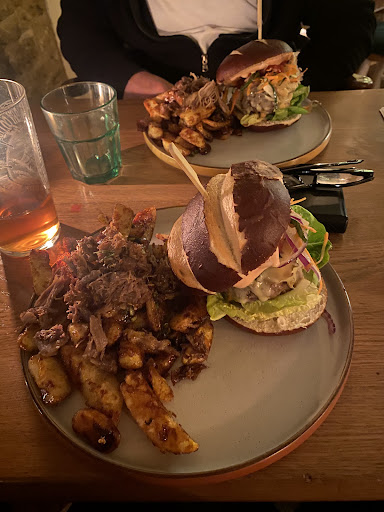 As you walk into the bright courtyard you are surrounded by the authenticity and unique stamp of this place. Beautifully placed colourful potted plants, and garden mirrors surround you. There is an olive tree in the centre and tables (socially distanced) with wind sails covering most of the tables from the threat of rain. There are patio heaters and a chiminea for those requiring a bit more heat. We walked in, but if you book ahead you will have the pleasure of sitting in the Lavender barn, think a livery, with fine dining. Itâs airy and yet brick secure. This place is completely covid secure. Each table has a wooden knocker on each table to use if you wish to use the toilet, just simply place it on the male/female sign to avoid any crossing of humans .. and you should go, if only for the motivation messages on the shelves. However the really impressive quality is the food, which my teen and child deemed as â best meal of the holidayâ and for the more eloquent son, âExquisiteâ Both had the cheese and Bacon burger. May I also add that they have have a cheese and bacon burger for lunch every day of their holiday and beyond are considered connoisseurs on the subject. We shared the prawn cocktail, spring rolls, Chicken wings, onion rings and goats cheese tart as a family sharing/ tapas option. All were divine, certainly homemade... with particular mention to the goats cheese. We lovely the baby spinach salad and the pistachios addition! But wait.. there are also daily specials! We saw the Chicken Kiev come out and we were a little envious. Finally, the garlic mayonnaise is something definitely worth a mention!! Run by a mother and daughter team, the service is knowledgeable, attentive, with lovely warmth and witty banter. We arenât local but this place is...