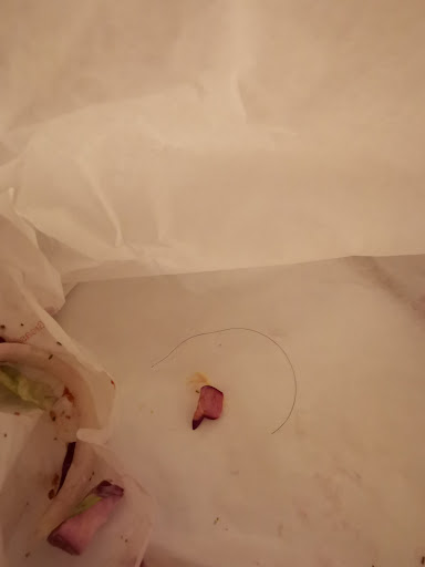 Found a hair in my sandwich too. Probably because the staff don't wear hair nets and face masks.