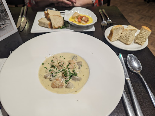 Read moreHave eaten here before and know the pasta is superb, On 20 October 2020 I went for a special wedding anniversary meal with my wife. We both wanted a good meal and were prepared to pay for it so we ordered the filet steak for our main course. There is no pasta on the menu as a starter but knowing how good it is we asked if we could have a main course served between us as a starter. The waiter agreed and we sipped our wine as we waited. A short while later a full-size dinner plate of pasta was unceremoniously plonked on our table along with another full-sized dinner plate and two spoon. I was so taken aback that the waiter was gone before I could say anything. This was a poor start to what for us was a special meal. Was the chef making a point that he doesn't do pasta as a starter? He could easily have served the dish on two plates! I thought the customer came first and such a simple request would be served in a nice manner. Very disappointing. The pasta nevertheless was delicious. Our steaks arrived and were large and well cooked, though not quite as tender as I would have expected, but we did enjoy them. The same can't be said for the vegetables which were barely lukewarm. We left without ordering dessert as we were both disappointed with a meal that cost over £90.00. If you visit, choose Italian from the menu, particularly the pasta, as it is what they are good at and don't ask for pasta as a starter! We will be back, but only for pasta and never again for a special...