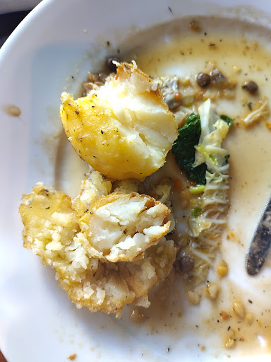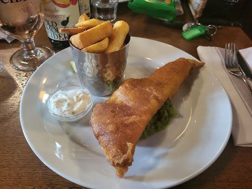 Ā Ā Ā Read moreWe had not been here since it had a refurbishment. We came to meet with some friends who we hadnāt seen for some years. We were shown to a nice table in the restaurant and menus were bought. For me I was not impressed with the choices on offer, there was a āspecialāsā menu which was no better. When the waiter Alex, came to take our order, although friendly, he was very pushy, trying to persuade us all to go for the specials and encouraging us to go large on the drinks and order bottles of wine instead of glasses. This continued throughout our meal. 3 of us ordered the fish & chips, 4 ordered the steak pie and 1 ordered the muscles. We all agreed that the food we had was very good, I would have liked more choices of good British dishes without the addition of other flavours like fennel or hazelnuts. Iām not sure if I would eat here again, I may go in...