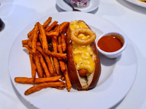 The initial call to reserve under the Eat Out scheme was efficiently handled and the Covid 19 measures explained well+our request for an outside table complied with immediately. On arrival we were warmly greeted and placed just as requested and given two parasols to shade us from the sun's glare! The menu is extensive and clear and Cerease, our waitress, helpfully explained as necessary. A great range of, milkshakes; ours lush! All freshly cooked food and very tasty-huge portions! My veggie/vegan hotdog with blue cheese in a brioche was the largest and best I've ever'ever had. Two of us were very full but we just had to try the ice-creams!! So delicious and yummy with extra bits! Nothing was too much for Kerry, who chatted a tad, when time allowed. She changed my ice-cream for me and that's only because I decided didn't like the flavour!! V kind. Altogether an excellent meal and it's unsurprising that my friends are regular visitors here. We will return! V good value even without the deal! Thank you and mille grazie Kerry, Cerease and Steph! Maggie...