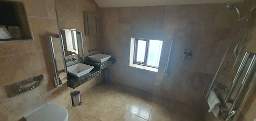 We stayed in cottages 1 + 2 for 3 nights mid week as we were part of the main wedding party. First impressions was that they were both very modern and looked great. Well kitted out rooms, comfortable bedrooms (1 double, 1 twin room and pull out settee, in cottage 1), 1 double and 1 pull out settee in cottage 2. So uncomfortable. The weather was beautiful and using the hot tub was great, Issues started when we discovered there was no air conditioning, we were informed that there were fans in the cottages but there was only 1 in cottage 2, the heating was not adjustable. Floors needed dusting with floor wipes and no lock on bathroom door. Windows only opened out slightly so not much air could circulate. Outside furniture could do with replacing or perhaps just the cushions. Anyway, there does need to be locks on the external gates as anyone can walk into the courtyard if they wanted to ( as did the owner one evening into courtyard 2, he only had to ask if it was OK. I mean there could have been people in the hot tub or sunbathing).|The day after the wedding all 12 of us attended the restaurant for breakfast at £15.99 per head for a 'traditional English breakfast' which consisted of 6 items. 1 sausage, 2 rashers of bacon 4 mushrooms ( if you were lucky), black pudding a fried egg and a grilled tomato. So the waitress took orders, some chose to change some items for beans ( I've never known a traditional breakfast not to have beans as standard,) some changed fried egg for poached. Well not 1 breakfast order was correct and when the poached eggs came out as hard boiled you just had to laugh and wonder what was happening in the kitchen. I myself ordered scrambled eggs and smoked salmon on toast, smoked salmon was lovely and fresh, the egg wad like a chopped up fried egg, probably one that was taken back and NO Toast, we all looked at each other and burst out laughing in disbelief. No apology, nothing. So in summary, the venue was not to bad, stay away from the restaurant and make sure you take enough toilet roll because we were refused one by the...