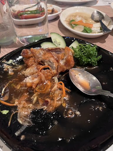 Read moreThe food is not great. This is the most Western Chinese restaurant I have ever eaten in and in no way authentic; It would be laughed out of China Town. I wouldn’t be surprised if their sweet and sour sauce is from Uncle Ben’s jars. The menu is confusing. We ordered a variety of dishes. The duck dish had batter which was disgusting. The pile left in the photo is of the aforementioned batter. Sadly the meat itself was over cooked. None of us were impressed; we cannot believe this has 4 stars. On a plus, the place is very clean and the staff are attentive and friendly. If they re-train their cooks [or chefs if they have them] then this place could...