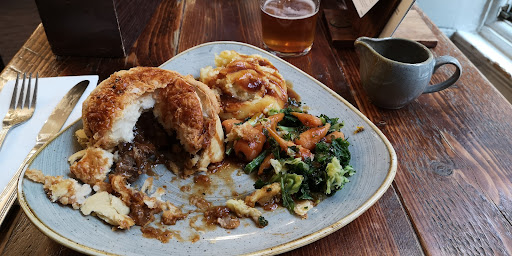 Read moreGreat location, fantastic interior - it looks amazing inside and outside. I pre- booked and request for a window seat was given. We loved the view. Staff were professional, welcoming and apologetic. Food choice was disappointing and let it down. We booked for 12 midday on a Sunday so lunch menus can’t be ordered from until 12 but we had to queue for 10 minutes to be told only 1 beef left but could have chicken. How do you run out of beef in ten minutes. There were not 100s of people infront of us. Clearly they had never ordered or cooked enough beef. I cook chicken at home that’s not a treat! We also couldn’t have the starters we wanted. Ran out of garlic mushrooms apparently. Get some one to buy some more mushrooms from the local shops forbgoodness sake. This is poor kitchen management. On the first weekend of the Christmas market this should have been anticipated. We had pre booked for this very reason. My husband ordered the wild boar and chorizo pie. We thought that a place that prides itself on its pies - this must be a good choice. Erm no. It barely had any meat in it and the pastry was a strange texture. He left the pastry lid. I feel just a little more forethought and organisation and I would have given it a ten out of ten. Come on Harkers -...