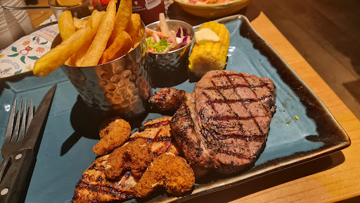 We've eaten at this location before but never experienced such poor customer service as we did today. To start with we were led to a table that involved walking up 3 steps, despite it being very clearly obvious I was using a crutch. My partner ordered the mixed grill, and I chose the salmon. I opted for a jacket potato and no sauce, rather than mash, as I have a lactose intolerance. We got our food and the jacket potato clearly had butter added to it. The steak on my partner's meal was tough and full of gristle. The egg was overcooked and rubbery and the peas were clearly not fresh. The green beans on my dish were also mushy and inedible. We pointed out the issues with the steak, peas and egg and our server did take it away and brought out a replacement that was much better. To his credit he did come back shortly afterwards and offered us a free desert by way of apology. We don't eat deserts, however, due to my lactose issue and my partner's diabetes. I am a blue light card holder and mentioned this when the bill came - no issue and a new bill was produced. It wasn't until we got home that we noticed the deduction applied to the bill wasn't as much as it should have been. The Blue Light discount is 20% however our £59.96 bill was only reduced by £8.50, which is roughly 14%. The general cleanliness of the restaurant was also poor - some staff had body odour issues and one of the chef's "whites" (ie their jacket) was very dirty. Overall not a...