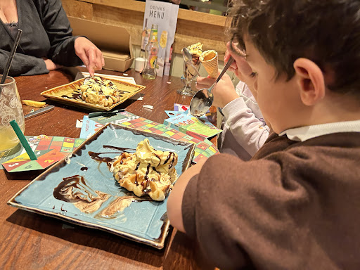 We sat down and waited a while to be served. Understood the team member was new. Had to ask and wait a while for salad bowls. We went to ask how long our meal would be as nearly an hour and was told that they had ran out of a sauce so we needed to know what sauce instead and that it would be straight out.