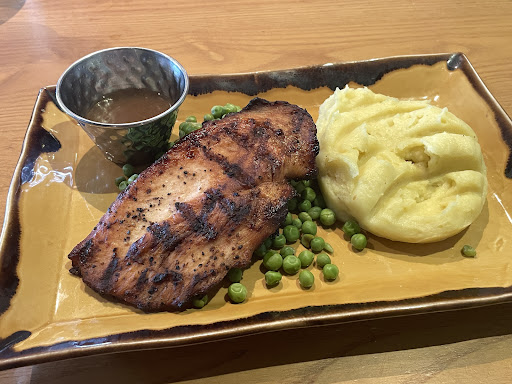 I paid £15 for a meal that was laughably synthetic. I have no idea how a chicken breast ends up looking and tasting the way it did - I suppose it comes in a bag pre-cooked and then microwaved or something. The saltiness was imbued in the chicken, rather than having been seasoned on top as it was plated up. It was soooo incredibly salty and as flat as a pancake. The gravy was also just a thimble full of salty jelly stuff, like it was made from granules alone. I felt like I was eating a processed, fast-food / bad-for-me snack rather than having an actual meal out. I had peas as advertised but the broccoli which was listed on the menu as an accompaniment didn't arrive.