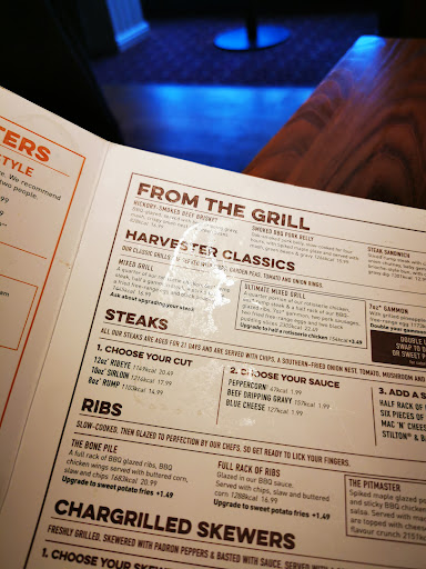 I try to be constructive with my reviews and I'm sorry to say this will not be a great one. We went on a Monday evening at approx 7.15pm. First job on entering the premises is to register your car Registration on an iPad type device - this looked like it had not been wiped in days, with finger smears covering it. We hadn't booked to eat and were told there was no room in the restaurant but we could have a table in the bar area. The staff member who greeted us looked hassled and handed us 2 menus - first impressions are everything so the fact they were sticky did not go down well. We were told to order food over the bar with no mention of whether we could still access the salad bar. We discovered we could so went up to the restaurant level. The handrails leading up there were also sticky. There was a staff member serving the salad bar and I think this is an excellent idea in the current Conditions (tail end of COVID) It would be good to see this continue indefinitely. I was not so impressed to see 75% of the upstairs seating empty after being told there was no room in the restaurant? We had just returned to our bar table when our starters arrived so the salads got put to one side. Only a quarter of the way into my starter and the main courses arrived! They were served to the table despite us not being ready for them and left getting cold. I gave up on my starter, scooped it on to the plate with the food from the main course and tucked in. I tried to ignore the fact that the peas were more yellow than green, that the beans were stringy, that despite the food arriving so quickly the chips were only just about warm. Nobody asked if the food was OK, or came to check how everything was. I gave up and left most of my meal. One of the female staff that we passed as we stood to leave had clearly been on a cigarette break and reeked of stale smoke. Not great in a food setting. I have realistic expectations and have used Harvesters lots in the past. I was not expecting a 5 star experience - I wanted a reasonably priced enjoyable meal. Instead I couldn't wait to go home and wash my hands. Sorry Windsor Lad but we...