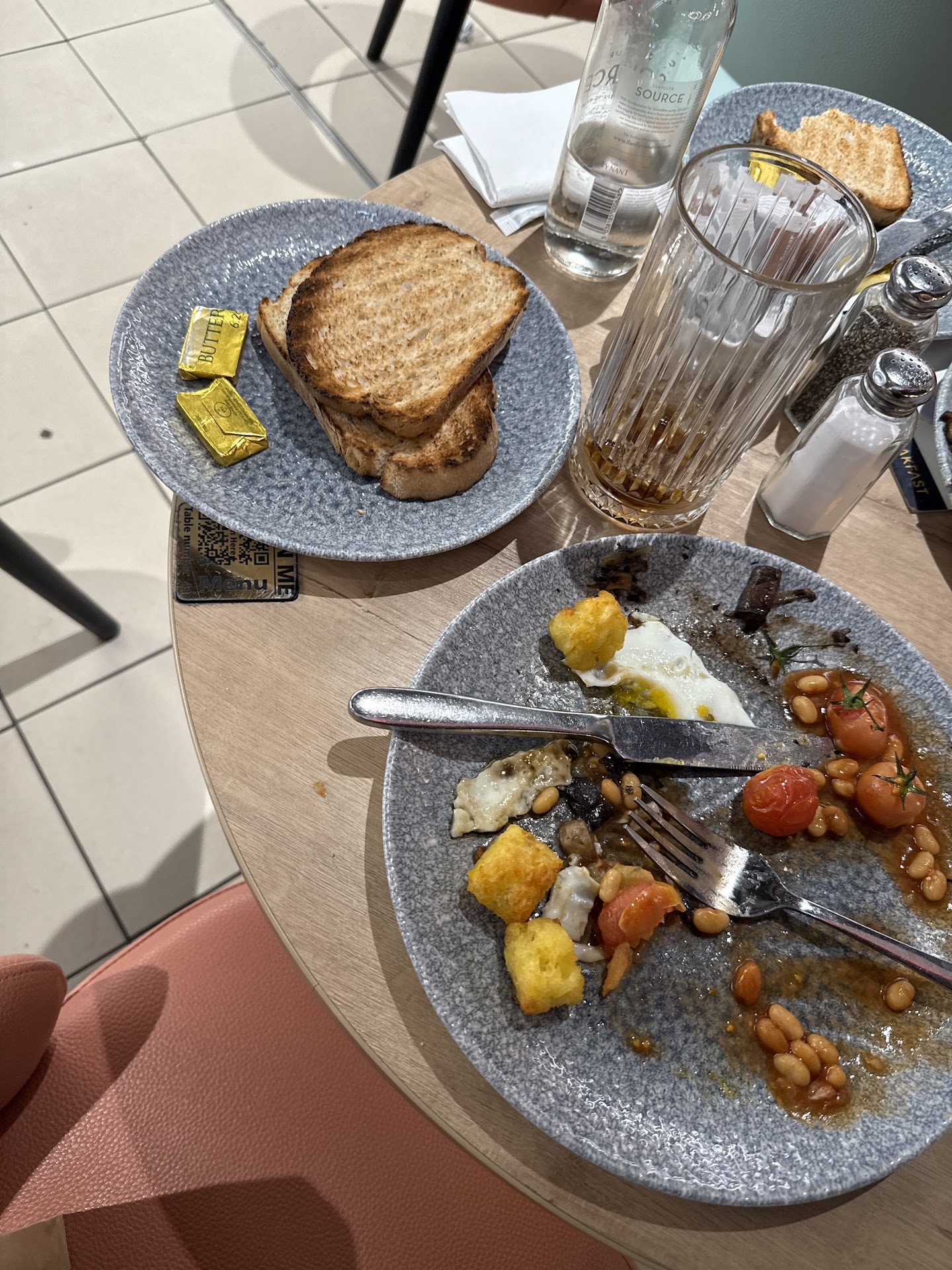 Appalling from start to finish. There is no table service but no signs to indicate this. When I arrived I stood waiting to be directed where to sit like at other airport restaurants. The staff just walked past me. Eventually a customer had to tell me they won’t come and just to seat myself. When I sat I had no menu. And the same customer had to explain that I had to go to the bar to order myself. I ordered a full English and a tea. I asked to swap the mushroom medley for toast which is a cheaper product. Yet they left the mushrooms and charged me almost £4 for ONE slice of cold toast. My breakfast was still charged at almost £13 with less items. They asked me which table and you just have to point and hope for the best as there are no numbers. Many tables were getting wrong orders. I had to wait at the bar for my pot of tea which I had to carry back to my table myself on the servers tray. When I got there, there was not enough water to make even one cup so I had to go return it and wait for it to get made again. Once my breakfast came it had scrambled when I asked for fried, and the waiter actually said “no you specified scrambled” despite him not being the person who took my order. He left to change it and left me with my cold toast, but no knife to spread the butter. The breakfast came back and both fried eggs had raw whites. I am pregnant and cannot eat this. The potato’s were like dried bullets. And the bacon was not a full rasher. The breakfast was clearly the original one with the scramble scraped off because it was stone cold.