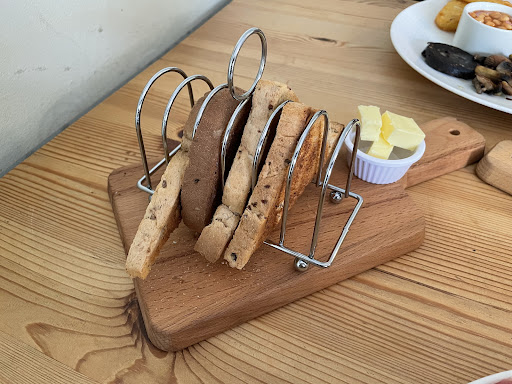 We were rather disappointed by the sandwich snacks although they were so attractively served. My friend had a delicious avocado mix but couldn't say the roll was not too dry which sadly the others found too. The falafel in my roll was stone cold and tasteless and the hummus, as the other main ingredient, appeared to have been given a quick swipe across the bread like spread, and was replaced by cold grated carrot? It was there as a trace so I felt I could not ask them if they'd forgotten it but it was a big disappointment - but very prettily served. I think we must have arrived when the ingredients were running out at the end of a Bank Holiday. I wish them luck and will call again another time...