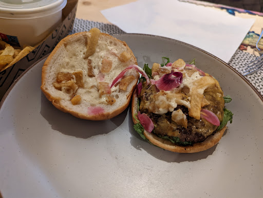 The flavour is 10/10. The Beyond Burger veggie option with the gluten free bun is divine. Lovely crispy chips too. Always served hot. Average wait is about 20mins once ordered, even when they're very busy, they serve you promptly and it's always well presented. Never over or under cooked.