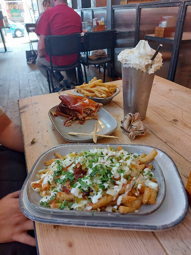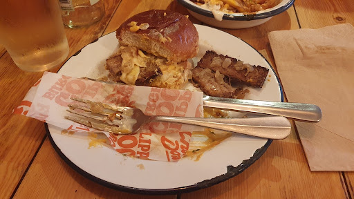 I had the 6oz burger with pulled pork, onion rings and sweet fries. I couldn't eat it fast enough yum. My partner had the Big hot dog, it looked the part and tasted it too. Kids menu is brilliant loads of choice for the little ones. The fish sandwich with chip my lad demolished and my princess had the kids hot dog to be like mum, great size portions. Kids also get a juice and içecream. Kids love the iceream served in a glass with cone.